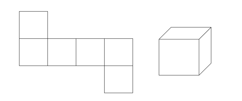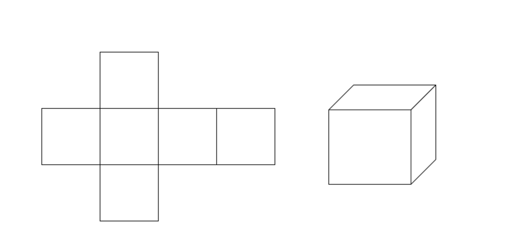 Voici un exemple du développement d’un cube. Les 6 faces du cube ont été développées pour former la figure ci-dessous.